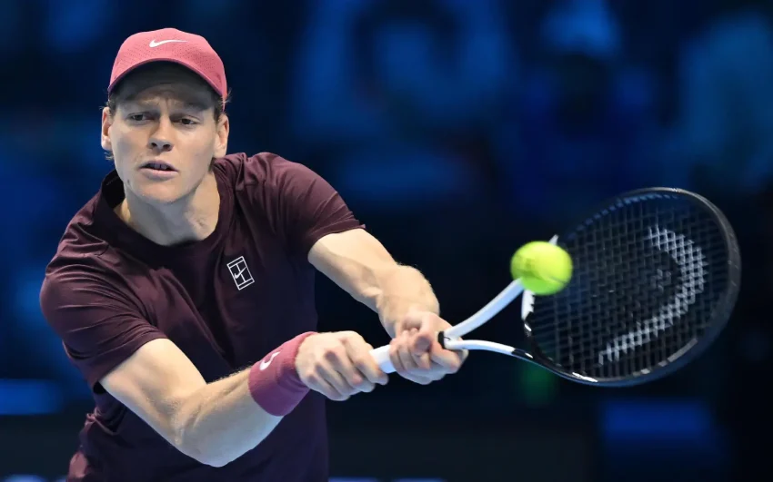 Italian Jannik Sinner in action during a men’s singles round robin tennis match at the ATP Finals. (EPA Images pic)