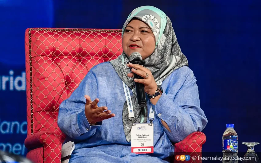 MCMC’s deputy managing director for development, Eneng Faridah Iskandar, speaks during a panel session at the Global Public Relations Conference and Festival Malaysia 2025 today.