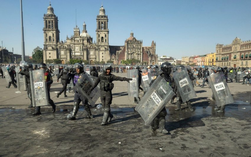 In Mexico City, a small group of hooded protesters tore down fences round the National Palace where President Claudia Sheinbaum lives, prompting a clash with riot police who deployed tear gas, according to Reuters witnesses.