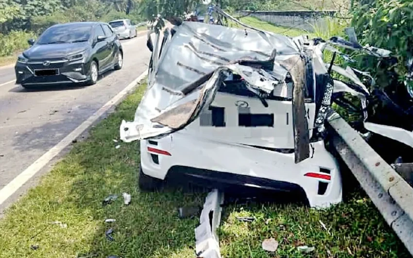 Menurut Yusof, kemalangan dipercayai berlaku apabila kereta itu hilang kawalan dan memasuki laluan bertentangan sebelum berlanggar dengan sebuah lori kelapa sawit tanpa muatan.