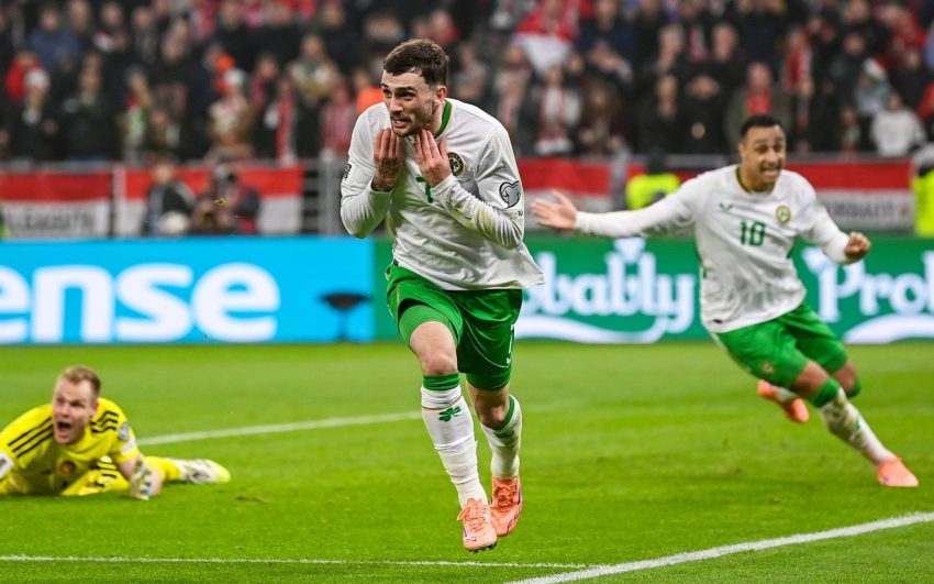 Republic of Ireland’s Troy Parrott (centre) celebrates after his dramatic 96th-minute winner secures a 3-2 victory over Hungary. (EPA Images pic)