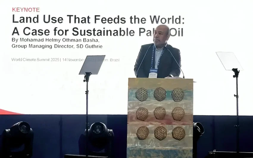 Pengarah urusan kumpulan SD Guthrie, Helmy Othman Basha, menyampaikan ucaptama pada World Climate Summit 2025 di Belem, Brazil.