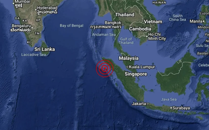 The department said the earthquake, which occurred 8km south of Simeulue, Indonesia, had a magnitude of 6.5, with an epicentre at coordinates 2.7° N, 95.9° E, and a depth of 57km.