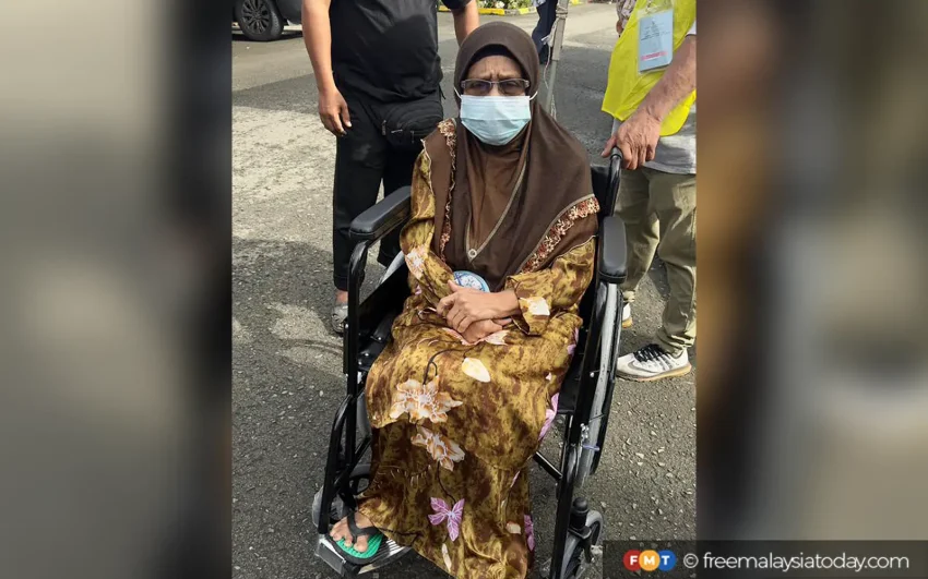 Antara yang menarik perhatian di DUN Sulaman ialah warga emas Siti Aminah Hashim, 71, yang hadir menaiki kerusi roda sambil dibantu petugas SPR.