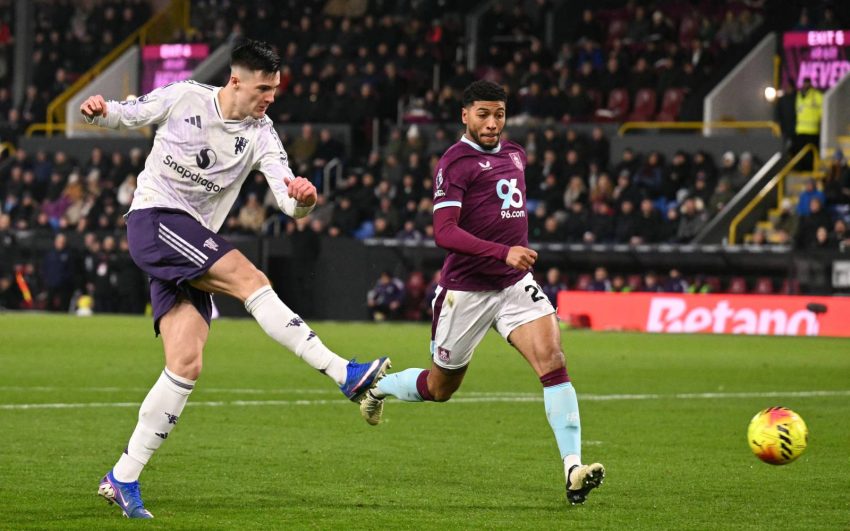 Manchester United’s Benjamin Sesko (left) hammers the ball into the far corner to equalise against Burnley at Turf Moor. (AFP pic)