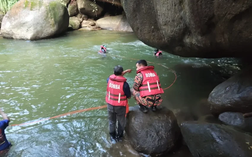 Pihak bomba memaklumkan, saksi memberitahu pasukan penyelamat bahawa mangsa dihanyutkan arus deras ketika cuba menyelamatkan rakannya.