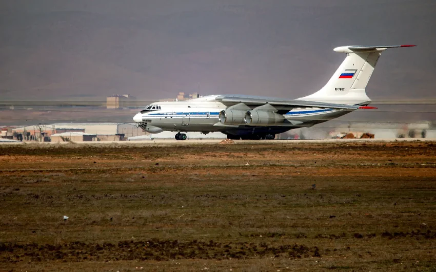 An AFP correspondent saw a cargo plane bearing the Russian flag taking off from the airport in the Kurdish-majority city earlier on Tuesday.