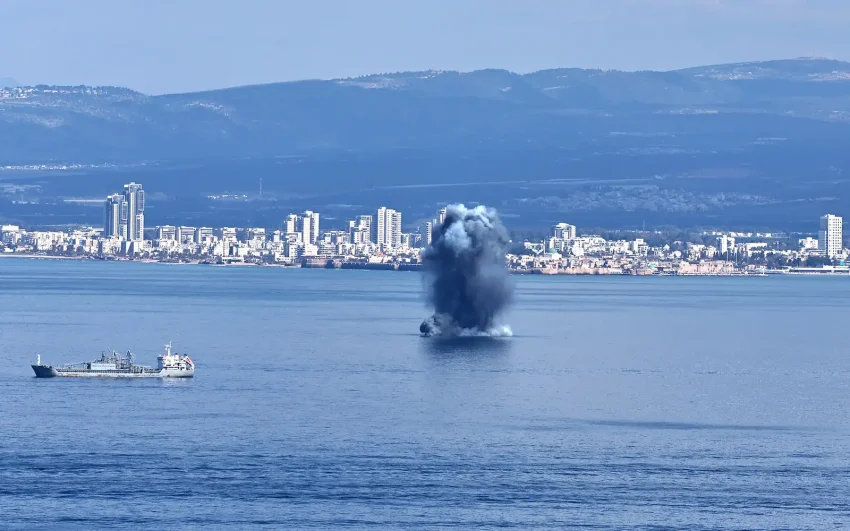 Peluru berpandu dilancarkan Iran jatuh ke laut di bandar Haifa, Israel pada Sabtu. (Gambar EPA Images)