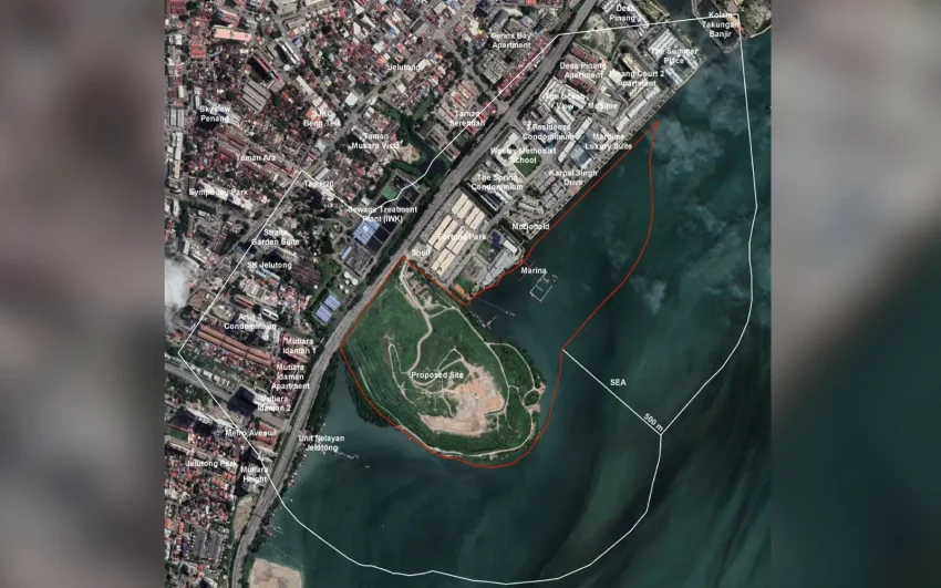 The project drew protests from residents and environmental groups, who said reclaiming land next to the old Jelutong landfill could affect public health and harm the nearby Middle Bank marine ecosystem.