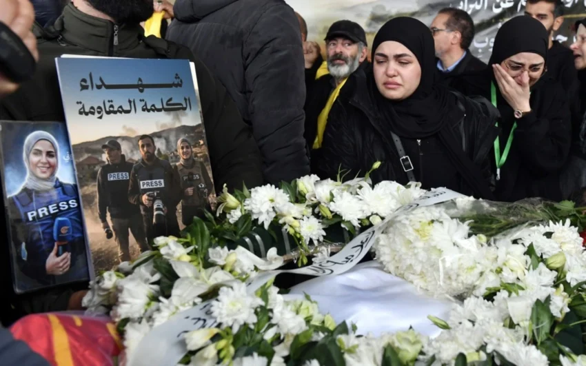 BEIRUT: The funeral for three journalists killed by an Israeli strike in southern Lebanon the previous day was held on Sunday, an attack Beirut called a ‘blatant crime’.