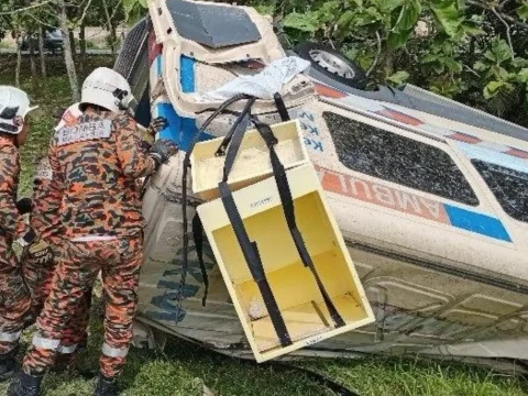 Pemandu maut, 3 cedera ambulans terbabas di Kluang