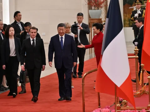 Macron calls on China to work for peace, rebalance trade