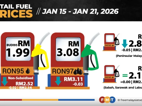 Non-subsidised RON95, RON97 and diesel prices down again