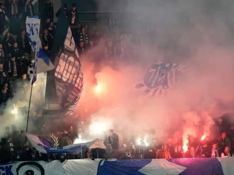 Fans tore down the fence and threw flares inside the stadium, causing the game to stop multiple times. (flashscore.com pic)…