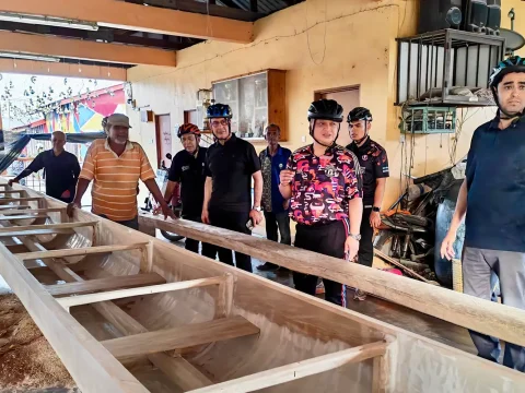 Raja Muda Perlis Tuanku Syed Faizuddin Putra Jamalullail berkenan berangkat melawat proses pembuatan perahu panjang sempena Kayuhan MAIPs Peduli di…