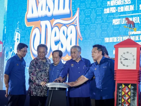 Ahmad Zahid Hamidi (second from right) at the launch of the Sentuhan Kasih Desa programme in Tuaran, Sabah. (Bernama pic)…