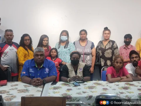Pengasas PKIPN Joseph Prakash (duduk, tiga dari kiri) bersama peniaga Deepavali yang didakwa ditindas, pada sidang media di Shah Alam…